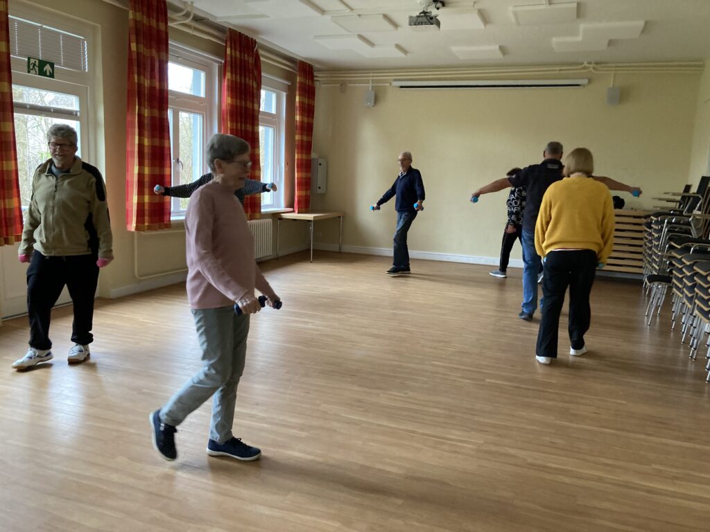 Der Kurs findet regelmäßig am Montag von 9:45 bis 10:30 Uhr bei uns im Dorfgemeinschaftshaus statt und wird mehr oder weniger fleißig besucht.